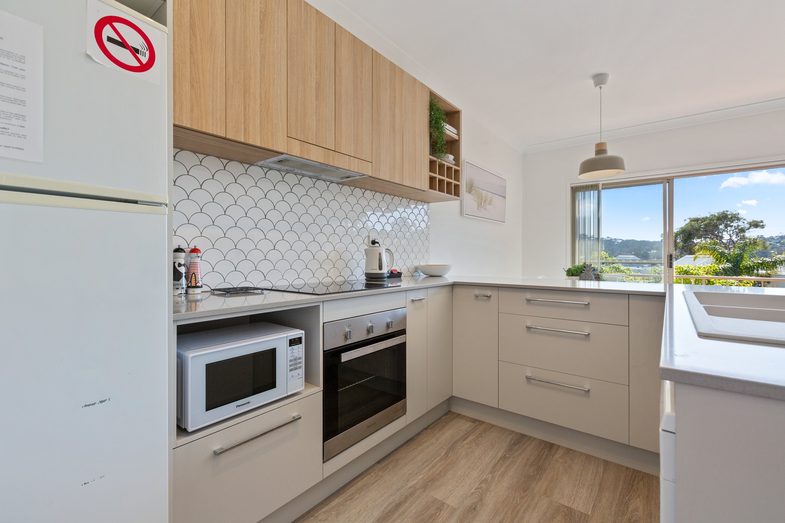 Our standard two bedroom apartments offer two bedrooms, with an extra large master bedroom, two bathrooms (ensuite with spa), full kitchen, laundry with washing machine and dryer and attached double lock up garage. Enjoy your private balcony facing North East and overlooking the pool or down to Mitchies Jetty to the east.